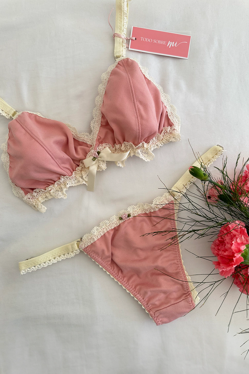 Corpiño triángulo de algodón soft forrado para mejor contención del busto. Posee puntilla fruncida en la base y moño de satén, súper romántico ♥