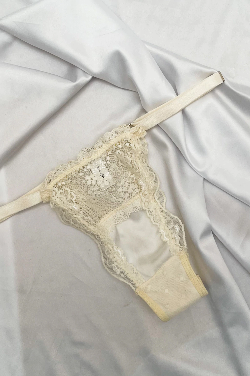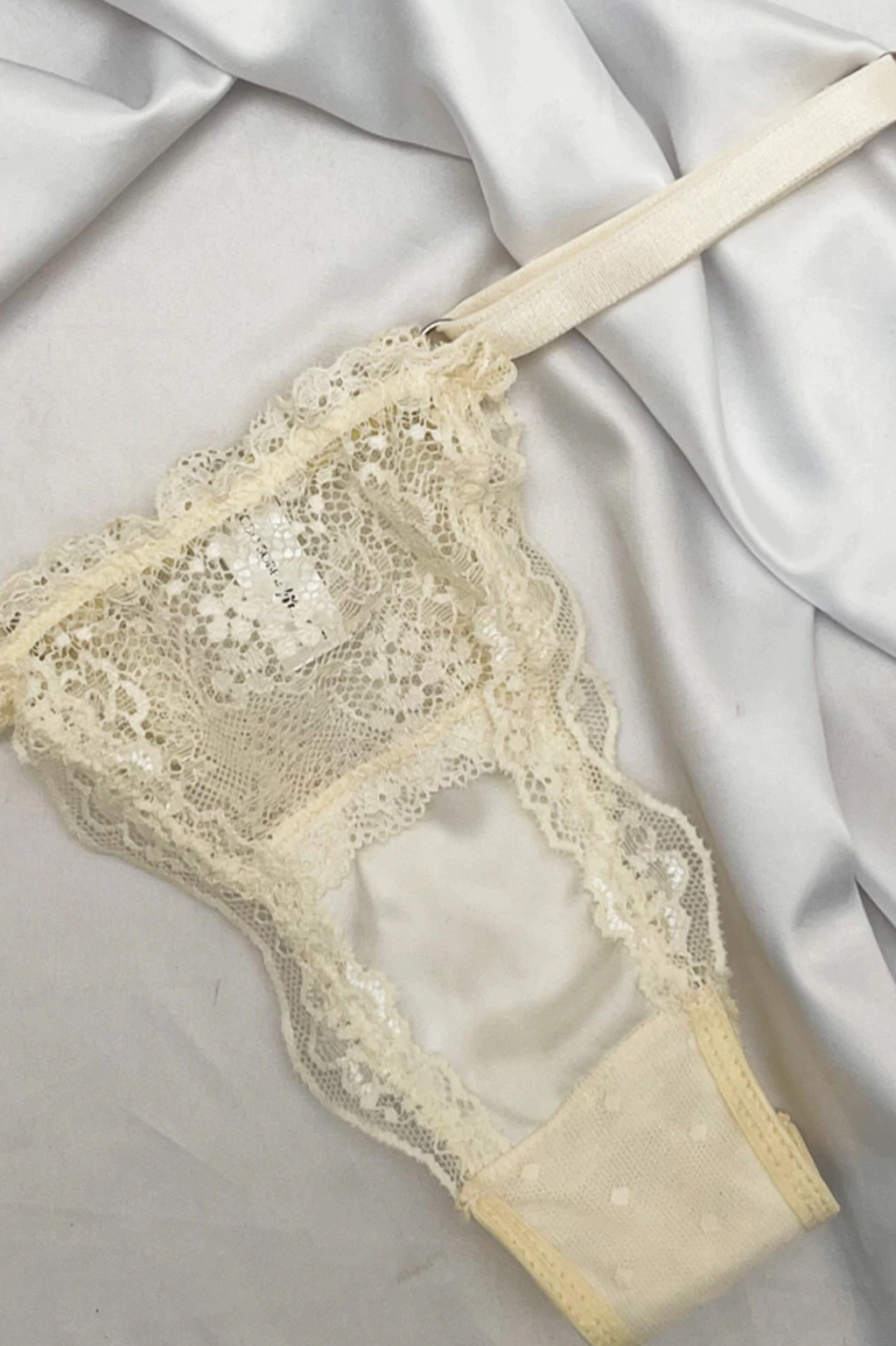 Less de satén y puntilla, con recorte en el frente. Los breteles son anchos y regulables.