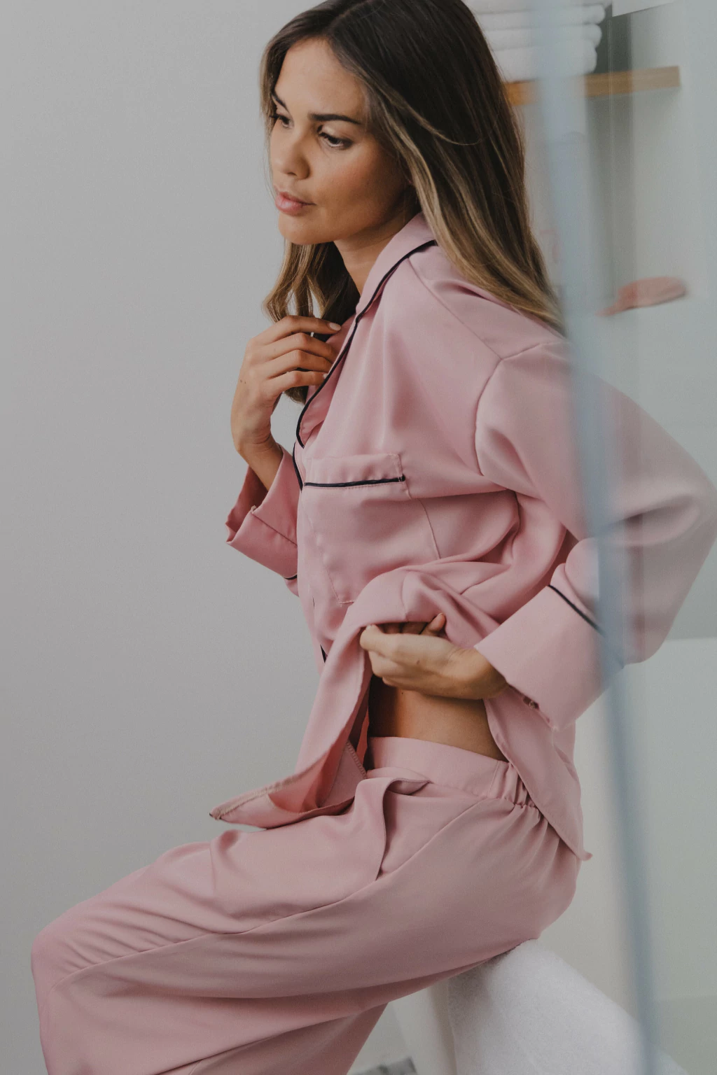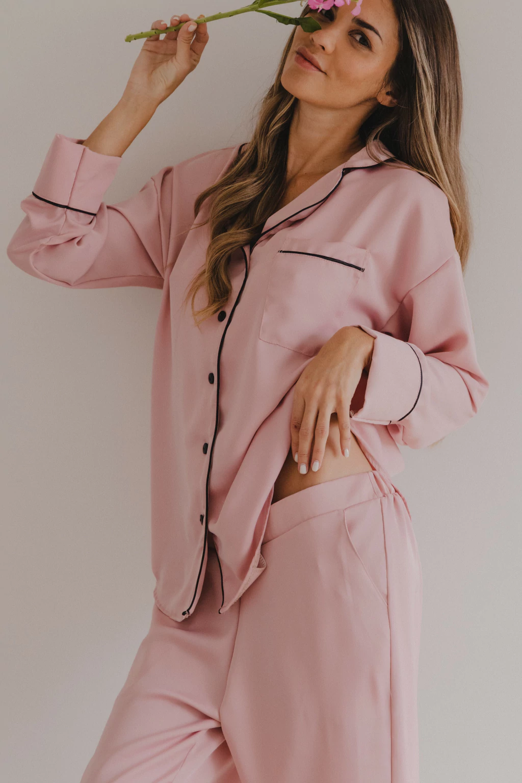 Camisa de satén mangas largas con bolsillo y vivo a contratono.